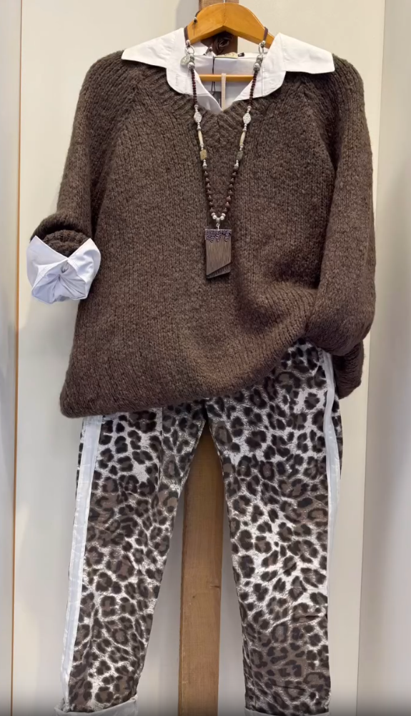 Moteriškas laisvalaikio stiliaus kostiumas, marškiniai, megztinis ir kelnės-LT