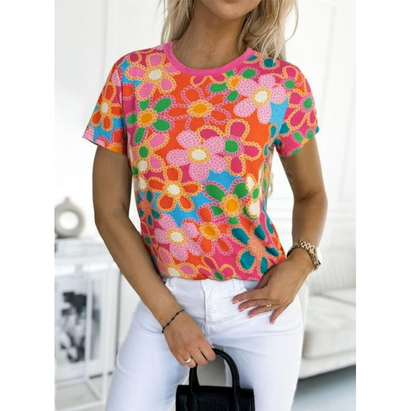 Ženska roza majica s cvetličnim potiskom-SI