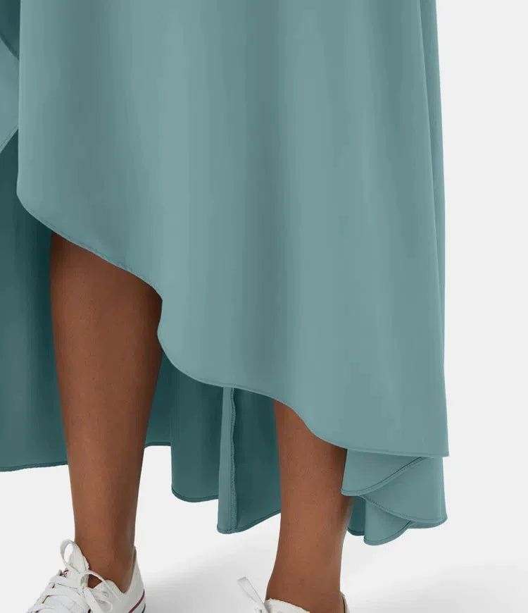 2 viename greitai džiūstantis laisvalaikio midi sijonas su aukštu juosmeniu ir mažais raukiniais-LT